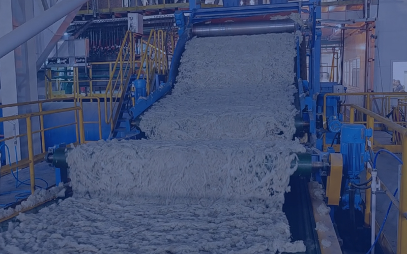 by the spinning machine are collected and shaped into a uniform primary mat.
