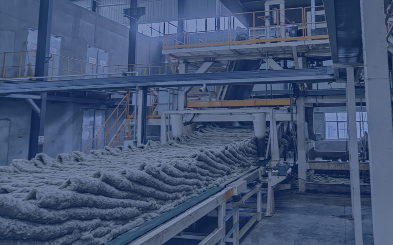 stone wool fibers from the spinning machine onto a conveyor belt, forming a uniform layer of